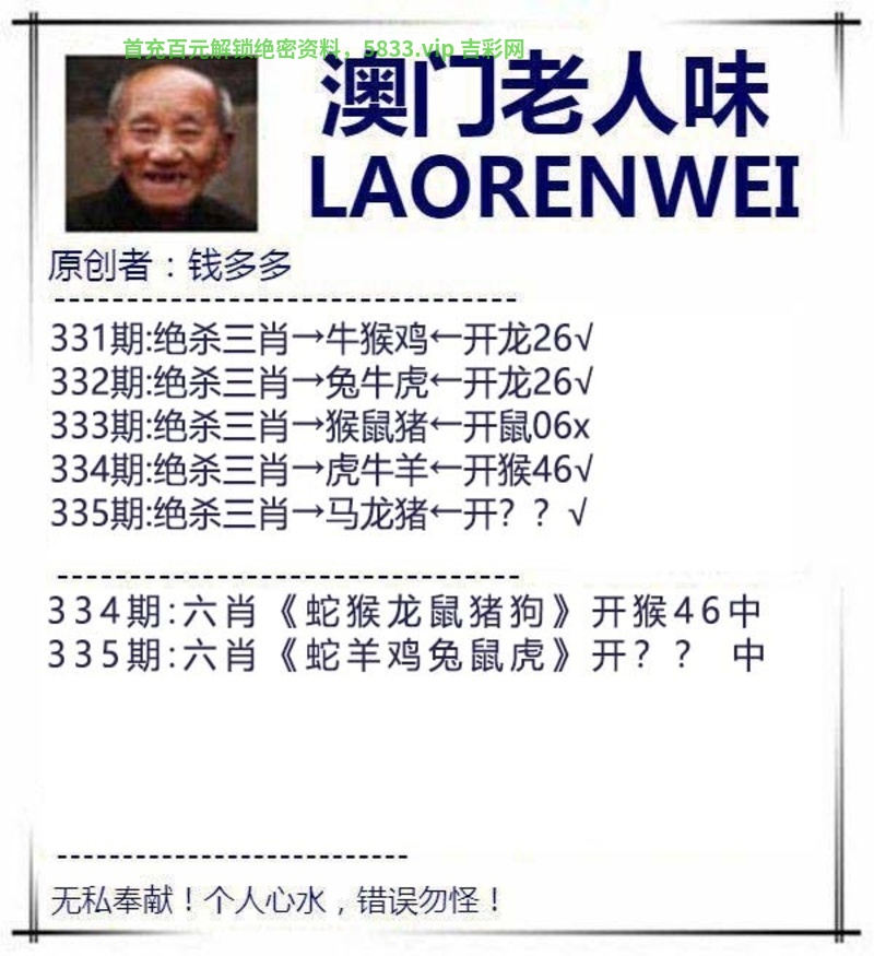 334期⑨肖:鸡猴虎鼠狗羊牛马蛇