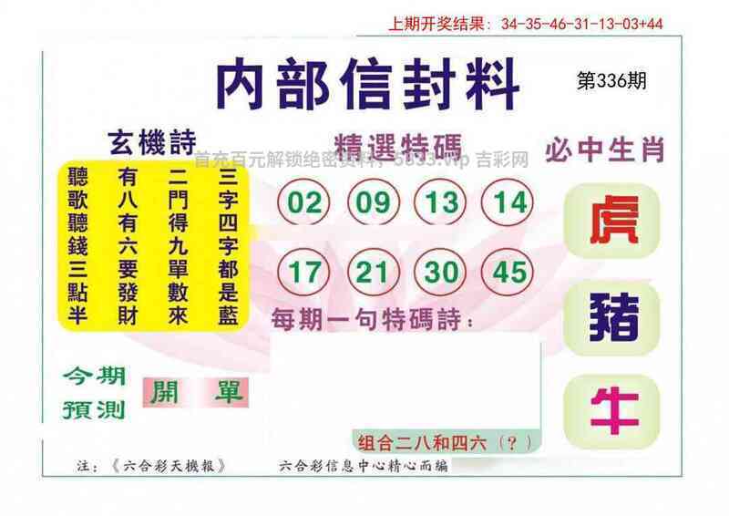 | 336期 | 猴 | 6尾 | 3头 | 牛17 |