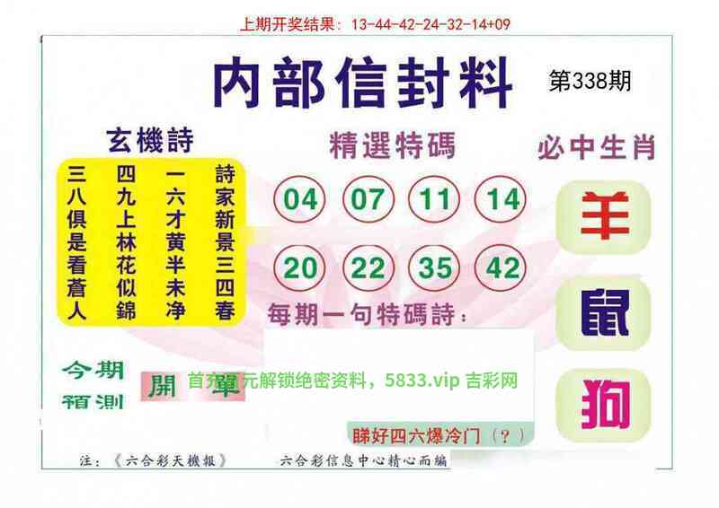 338期:九肖准特【马蛇猴鼠羊虎狗鸡龙】开:狗08准