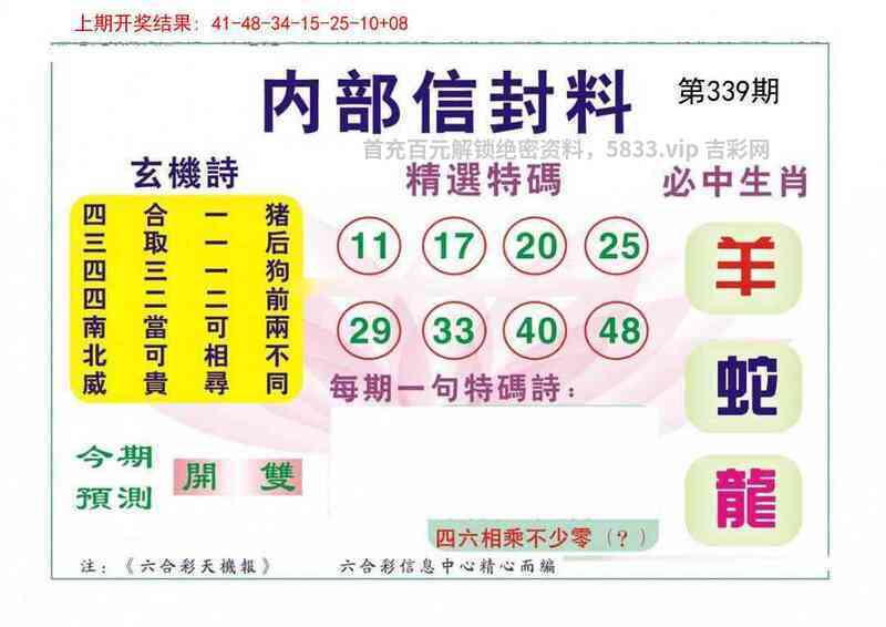 339期⑨肖:羊马猪蛇鼠鸡龙猴牛